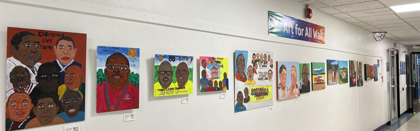 The Y's Art For All Wall is full of color and expression for the next two months thanks to Y member and OSLP Arts & Cultural Artist, Perry Johnson!