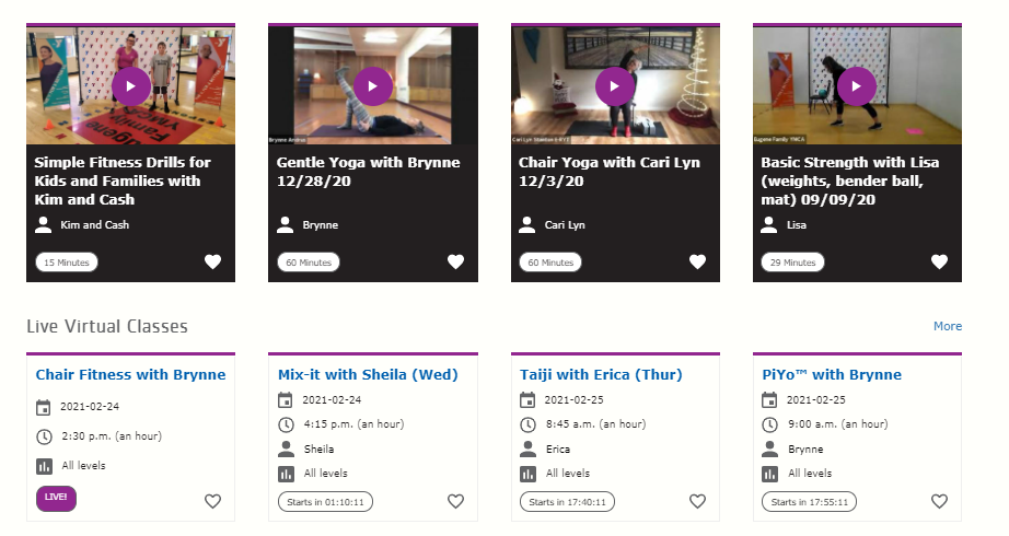 Welcome to your new virtual YMCA world that easily links you to all of on-demand videos for fitness, yoga, meditation, family and more! As we continue building content, expect to see brand-new virtual offerings that meet you wherever you are and help further your health and wellness goals.
